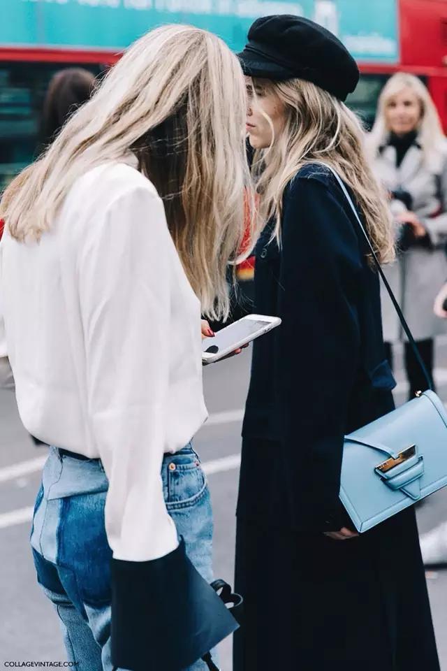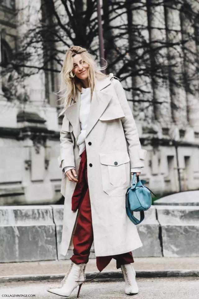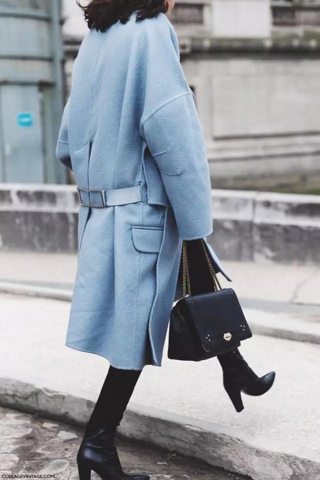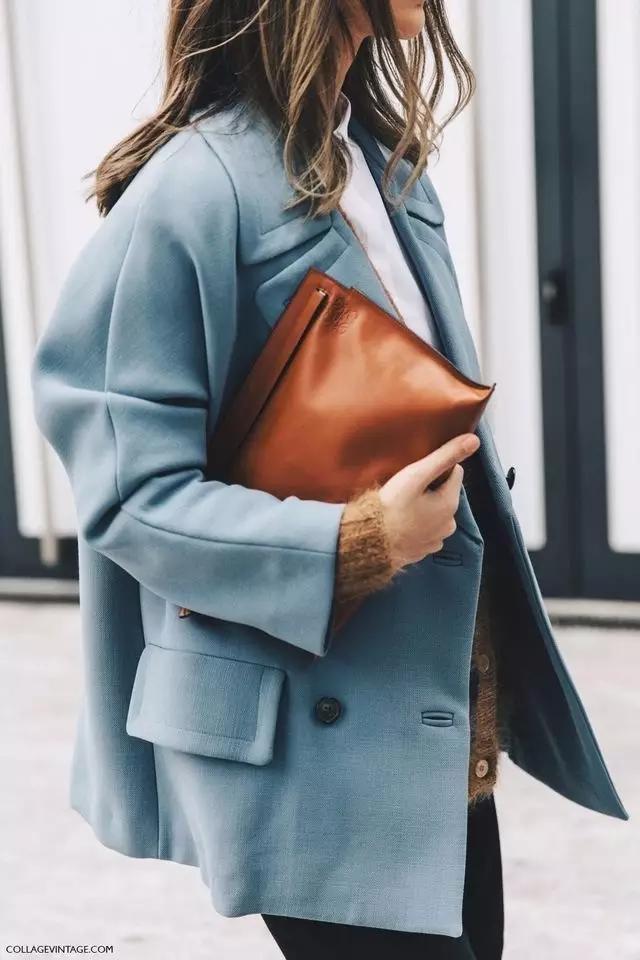 驼+白+double雾霾蓝,选择与身上任一物件相同的颜色,很容易就显得高级有心思。也能更好的打造主色调呢~