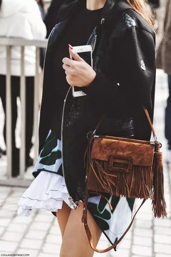 黑色也有很好的包容性,与朋克、流苏、格纹等常见流行元素都有很好的相适性,搭上黑色经典又不失时髦,相比起雾霾蓝草木绿等流行色,一点都不用担心过时~
