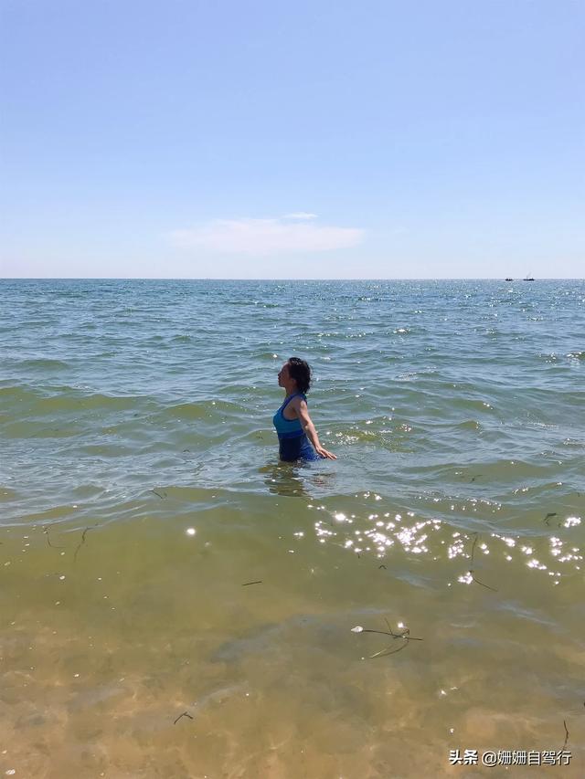 4.这里的天很蓝。可以在沙滩上晒晒太阳,拍拍照。
