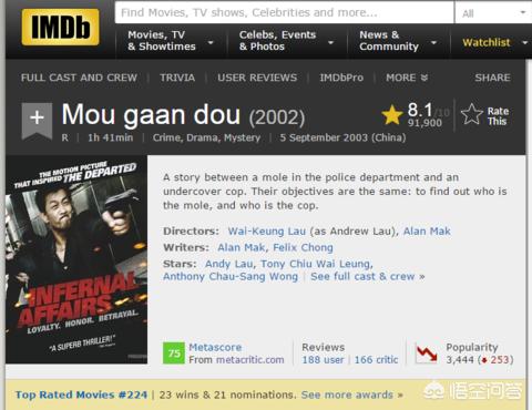 无间道更符合中国人心中的江湖和审美吧,无间道给了你一个义气,神秘的江湖世界,诉说出来一个轮回的充满中国大乘佛法的意境。但是新世界就没有这种玄学的痕迹。