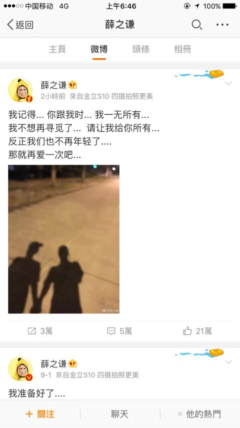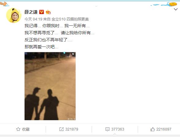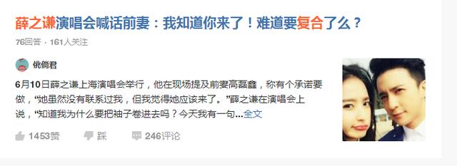 几个月前薛之谦喊话前妻的时候就有人预言是不是要复合了。