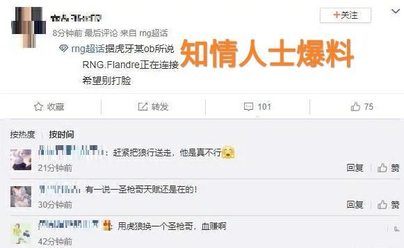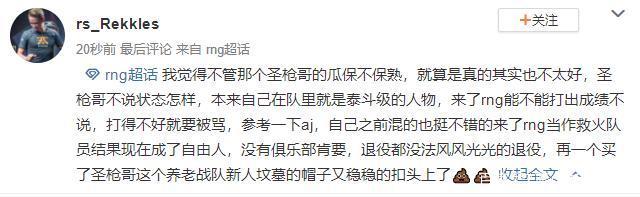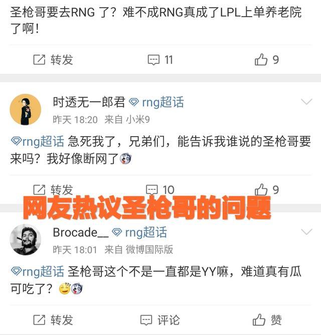 消息来自与虎扑上的一个帖子,不过现在已经被删除了,当时这个帖子说的就是夏季赛RNG的上单是圣枪哥。随后在RNG的超话里,也有类似的爆料,有人表示夏季赛RNG上路要来一个boss。还有多位RNG的粉丝表示,自己在虎牙的RNG专属OB直播间里,听到OB主播也说了RNG圣枪哥即将链接。