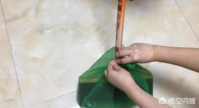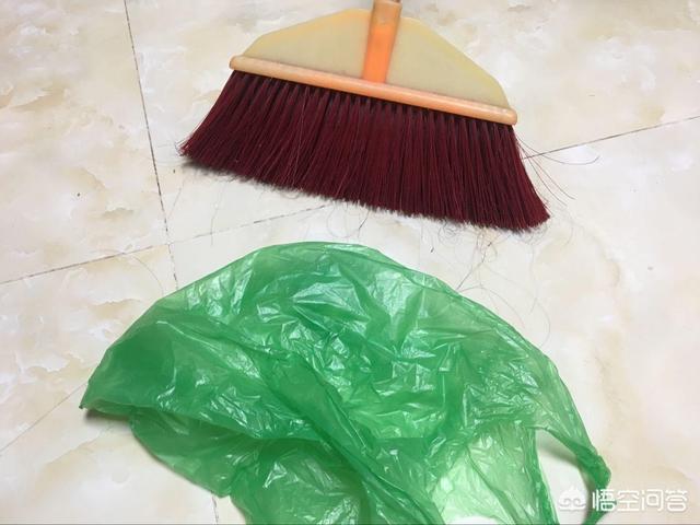 一、我们大部分的家庭会将一些购物袋收集起来备用,可以将这种购物袋套在扫把上,再将购物袋的两个提手相互捆绑起来,这样相当于给扫把装了一个保护套,头发再也不会緾绕在扫把上了。