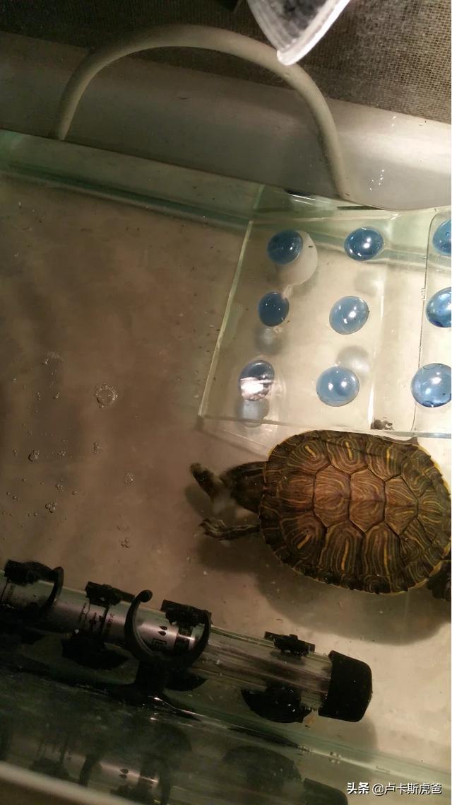 还有一点就是换水,刚换水,巴西龟会贱贱的在里面拉粑粑,过个两天换一次,不然里面就变绿了,还有股臭味,哈哈,时间久了不换水,它们还是容易白眼,红眼。如果你比较懒,那就整个水循环过滤吧,虽然占地方麻烦,但是可以不经常换水了。如果连食物也懒得打理,那就买点龟粮好了,营养高,巴西龟也没得挑的。反正也会吃的。基本上扔进去点龟粮。他们就吃完了。