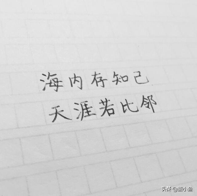 海内存知己,天涯若比邻。无为在歧路,儿女共沾巾。一一唐 王勃《送杜少府之任蜀州》