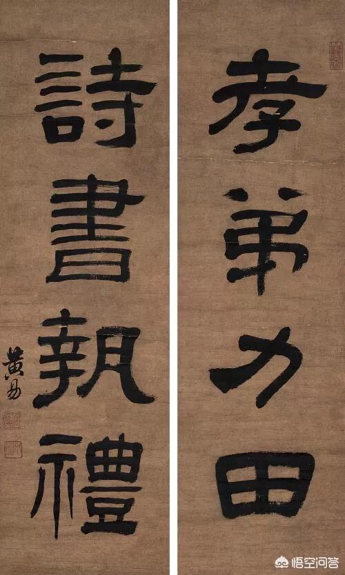 3、黄易其父擅隶篆,其本人隶书篆书得家传,且其隶法中参以钟鼎,愈见古雅。其代表作隶书《警语》,其书笔划圆润平实,气势宏大,深得古法,是谓大家。