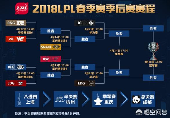 lpl春季赛常规赛已经告一段落,现在终于迎来了季后赛,季后赛总共有八支队伍,先是八进六的赛制,在4月12日下午五点开始比赛,由东部第三的rng对西部第四的we。