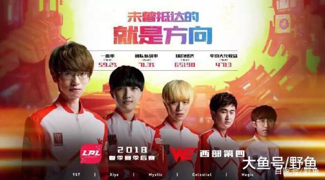 从春季赛常规赛我们可以看到,we的状态在世界赛之后差的不谈,除了中单兮夜状态不错之外,其他位置的状态似乎都不太好,而且相对于东部,西部的队伍实力应该是弱一些的,就这we也仅仅是排在第四的位置,勉强进入了季后赛,所以we状态堪忧,难以胜出。