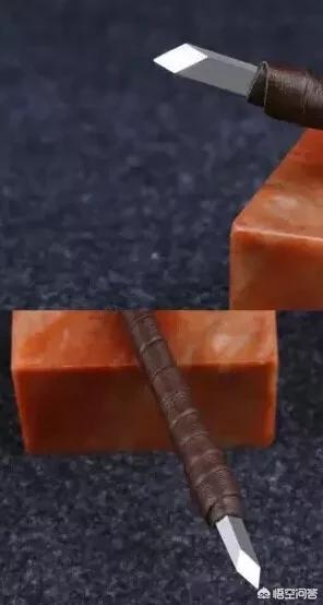 篆刻最常用刀就是平口刀。它是两面开口,刀口两角需成九十度角。若刀口大于九十度,篆刻时易滑刀,不易刻准、刻直,就需要磨刀了。