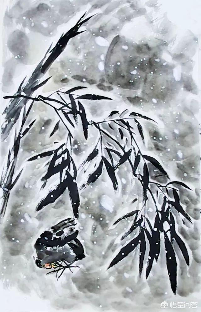 国画墨竹怎样画?有对联写得好; 虎行雪地梅花五,鹤落霜田竹叶三,由此可見画梅花是五辯,画竹叶是三片,基本上是个“个”字″型,毛笔用“白云”较好,墨要用“松烟”,(写字用油烟),构图易简不易繁,无论画干还是画叶不能回笔,有漏墨处可视为意到,干、叶、枝用墨要分三~四层,轻、淡、重、焦以表现层次,初学者最好多看郑板桥的墨竹,领会一个“竹”要瘦。