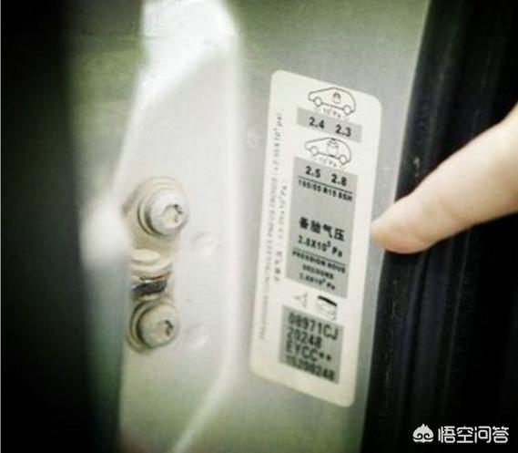 1.查看自己爱车的胎压值是多少,找到车门边上的有一个车辆胎压标识。