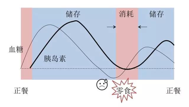 吃零食的习惯打断了两餐之间消耗糖原的模式,使得消耗热量的机会小于储存能量的机会。