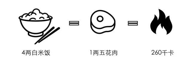 如果我们算一算4两白米饭和1两五花肉的热量(卡路里),它们几乎是一样的。