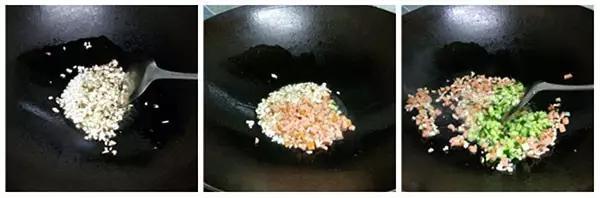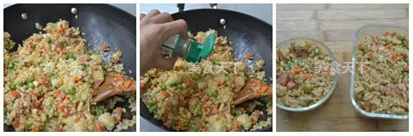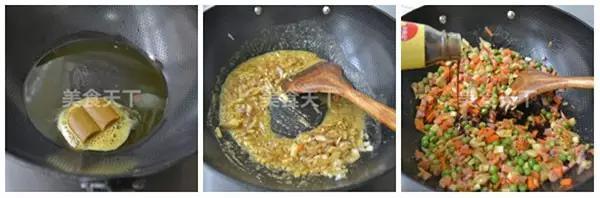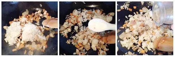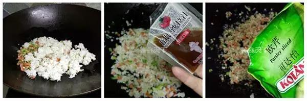 7、放入提前捣散的剩米饭翻炒;8、调入丘比沙拉汁;