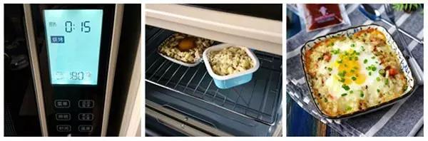15、戴上隔热手套,将烤好的焗饭取出,趁热撒上葱花即可。