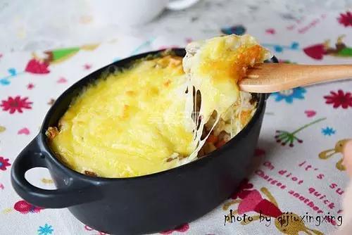 焗饭操作方便,用料取自家常,不仅可以根据自己的喜好来变换口味,还可以充分发挥想象力,心动不如行动,赶紧做一份奶香浓郁的焗饭吧~