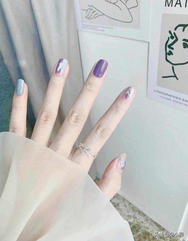 蓝紫色带着灰色调美甲,高级不俗气,而且会带来清凉感。