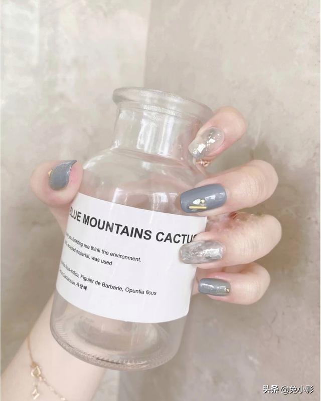 再有,蓝色甲油与银色闪粉甲油搭配在一起,颜色会莫名的干净,加上晕染的手法说不出的高级感,不容易撞款,也很有个性!