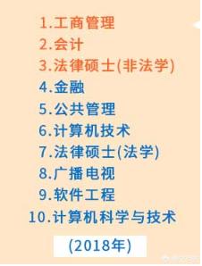 在2018年考研中,工商管理专业报考人数居首位,达到19749人,其次是会计专业和法律硕士(非法学),报考人数第四位至第十位的分别为金融、公共管理、计算机技术、法律硕士(法学)、广播电视、软件工程、计算机科学与技术。从2016到2018年,考研热门专业基本没有变化,具有一定的稳定性,今年预计也不会有大的变化。