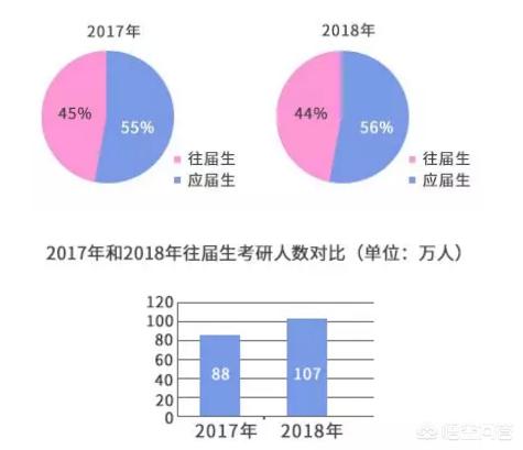 在2017年国家把在职研究生纳入统考后,让更多的在职人员加入到考研大军后,考研往届生的数量就不断增加。2017年考研往届生为88万人,占考研总人数的45%,2018年就已经达到了107万人,占考研总人数的44%。