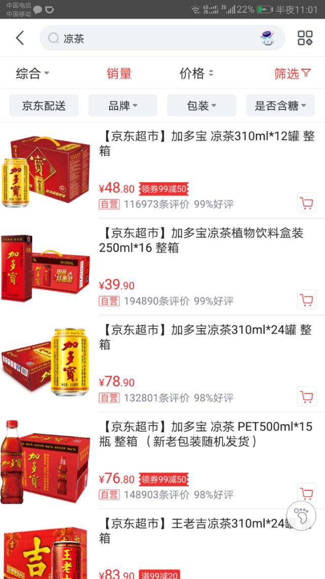 在京东的凉茶销量排行榜,加多宝也是占了前四,第五才到王老吉,销量说明一切吧。