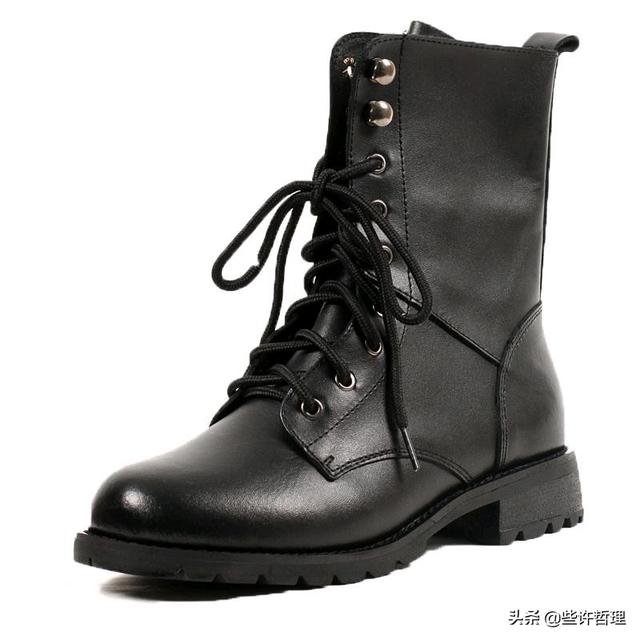 矮个子的女生选择马丁靴就不要太过高帮,一点点低帮的设计就可以了,绑带的马丁靴是比较的经典造型,黑色自然也是必定会选择的颜色,一双比较普通的马丁靴款式配上花灰色堆堆袜,露出一点点堆堆袜,也是很时尚的,秋季穿马丁靴可以配露腿哦,配上皮衣帅气十足。