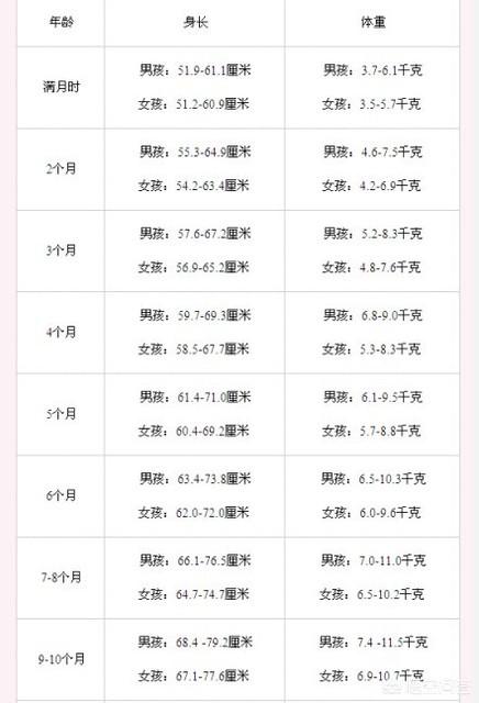 其中,3个月的体重平均值是6.4公斤,正常范围是5.1~7.9公斤;身长平均值是61.4厘米,正常范围是57.6~65.3厘米。