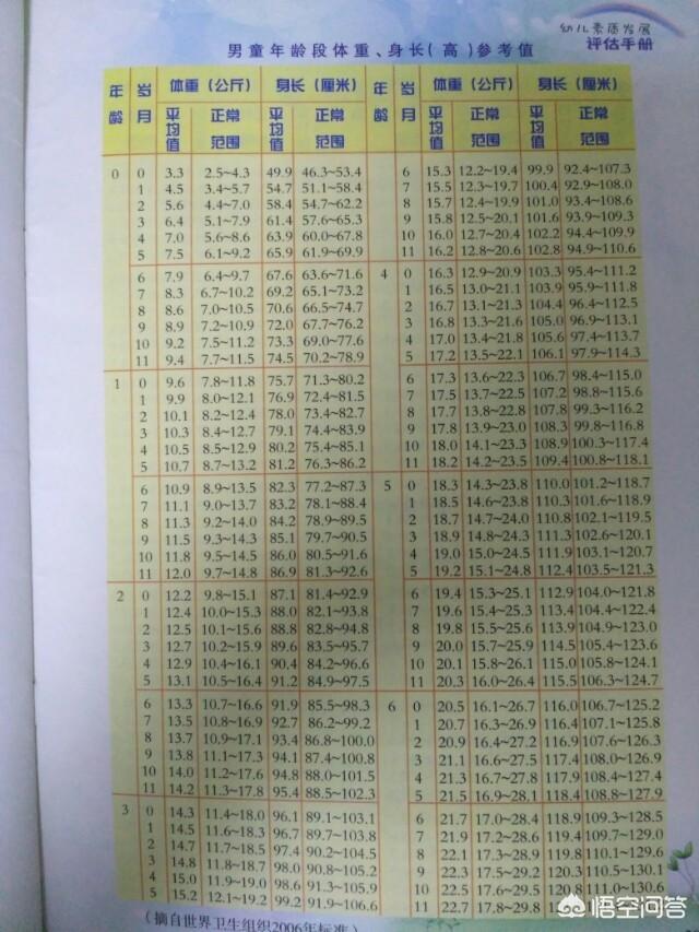 先附图一张,看一下男宝的发育指标,图表来自我儿子幼儿园的评估手册。
