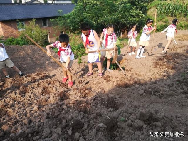 武义县熟溪小学二(1)班同学在翻红薯蔓