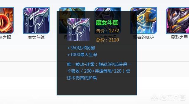 如果你遇到的敌方队伍法师的发育很好,上面的出装就没啥用处了,护甲只能对AD有用,是扛不住AP的伤害的,因此,这时候最好就是做魔抗装备:魔女斗篷、不死鸟之眼,贤者的庇护。