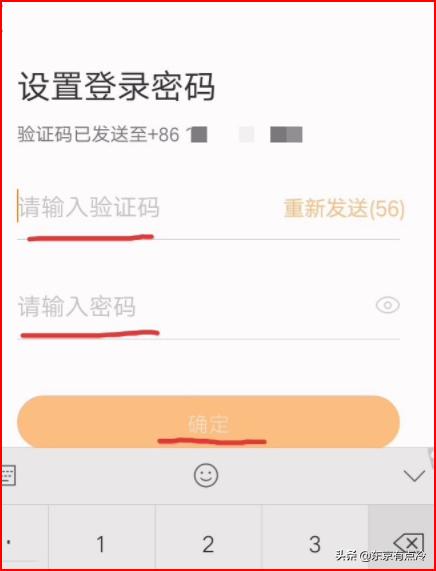 4、输入手机号,点击下一步,然后输入验证码和密码,一定要记住密码,这就是以后的登录密码,最后点击确定就登录成功了。