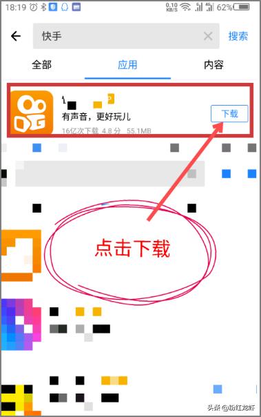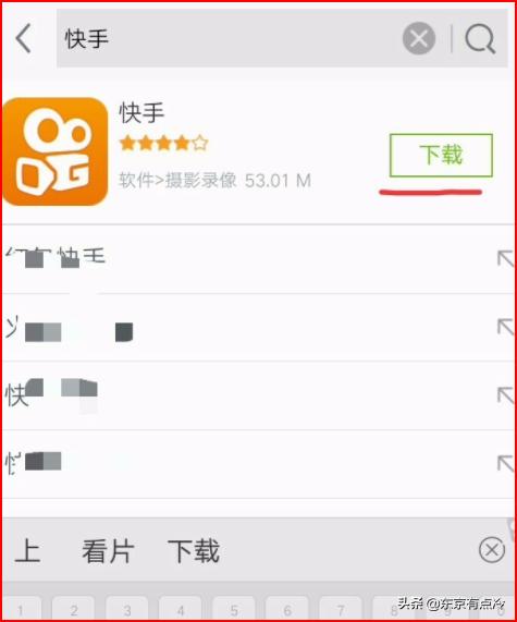 1、打开MM商场,输入快手,下面就出现了快手APP,点击下载就开始下载了。