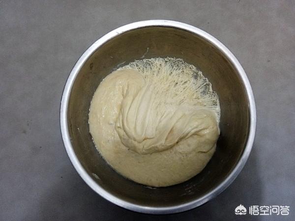 2, 用温水活软点。发至两倍大《冬季的话就得提前和面》,筷子搅动均匀,再用手和面,要使面团揉光