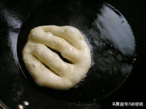 6、把擀好的面放入油锅,膨胀后,再翻炸另一面。就可以了