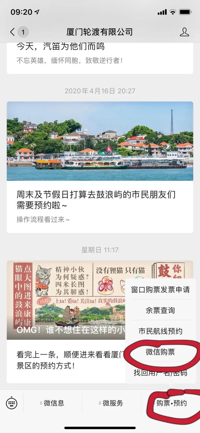 微信关注“厦门轮渡有限公司”——在右下角“购票预约”——选“微信购票”——然后按你的具体计划出行时间选择。(里面有详细的乘坐码头信息,按照约票上的信息走即可。)一般来说,工作日时约票比较不紧张,提前一两天,有时候当天买票也不是难事,但是周末和节假日的时候就要提前预定了,只要有这个提前买票的意识,其实都是可以约到的!