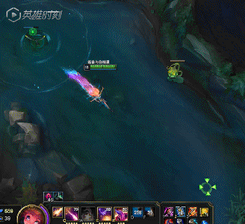R技能,有点像老版的妖姬W,但是,会自己回原地,距离也短,而且没有伤害,单看这个技能可能没什么用,但是配合其他的技能就会有出其不意的效果。