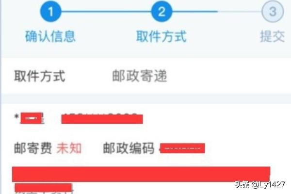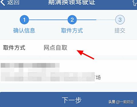 8、确认你是自取还是邮寄,邮寄是需要花钱的,点击下一步。