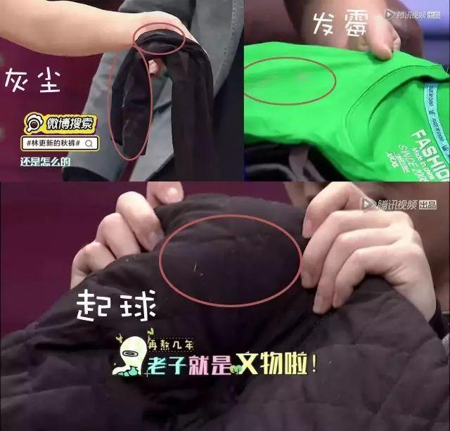 接着随手拿出几件,颇有历史研究价值......哦不,是穿了很久的衣服,有灰的、发霉的、起球的......