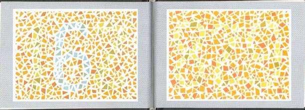 对了前几天在微信的朋友圈里,看到了一个测试色盲的APP,那个可真的难以辨识,把我这个自认为对色彩有非常敏感的绘画者都有点难住了。下面还是截几个常见的图案给大家看看吧。