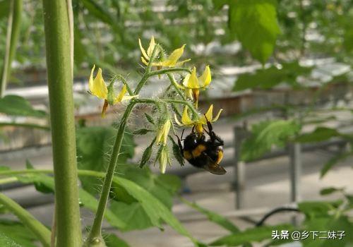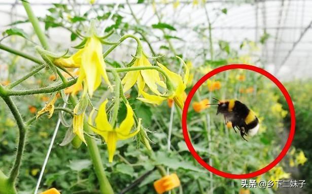 保护地生产番茄时,可利用熊蜂或其它种类的蜜蜂对番茄进行授粉,在棚内释放熊蜂,使其对番茄授粉。