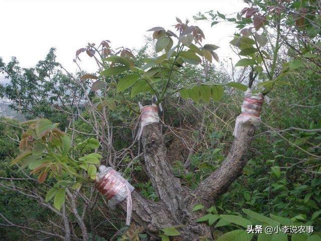 嫁接选择在三月中旬,一个晴朗无风的午后,距离地面十厘米的砧木上进行,家里的必须注意放水,再进行劈接,最后用塑料缠紧,防止水分蒸发,成活以后及时去掉缠绕物,新梢长出二十厘米后,用小竹竿固定好,防止被风吹折。