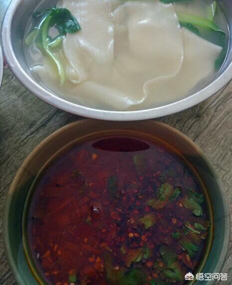 第三个喜欢吃的陕西美食是“蘸水面”。面片有点像我们河南的烩面,只是河南烩面将面片拉扯开后劈成窄长条形,“蘸水面”的面片只扯开,不劈窄。
