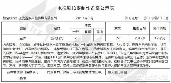•电视剧制作方的公司游族影业以前所做的事,也让人很担心,2009年,游族影业就把《三体》的著作权、改编权买下来了,并使用十年而到今年刚好十年之期将满,怕是游族影业被迫没办法才勉强准备拍成电视剧的。在2014年,游族影业就宣布把《三体》三部曲改编为电影预计为六部电影,2015年宣布由彭绍峰,张静初,吴刚,唐嫣,杜淳,张翰等人为主演并且开拍,但是在2016年六月就宣布制作团队解散,这部电影不了了之。而且在之前2015年,游族影业高层纷纷出走单干创办自己的影业公司。所以现在游族影业的实力让人堪忧。因为像这种科幻电视剧最重要的是特效制作的水平,要想拍出好的效果,就必须要投入大量的资金,这从《流浪地球》这部电影当中就可以感觉的出来。所以很多网友也纷纷表态,担心游族影业有没有这种资金来支撑?如果没有资金来支撑,就希望这部小说还是先别拍成电视剧,不然浪费了资源。到时候又不了了之,又是一个坑。