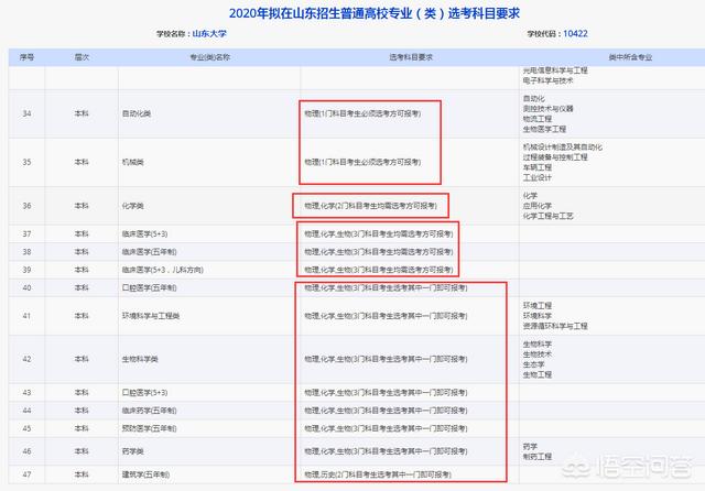 以山东大学为例:自动化和机械,需要必选物理;化学类要求必选物理和化学;临床医学等几个专业要求必选物理化学和生物;口腔医学、生物科学等专业,要求物理、化学和生物任选一科就可以。