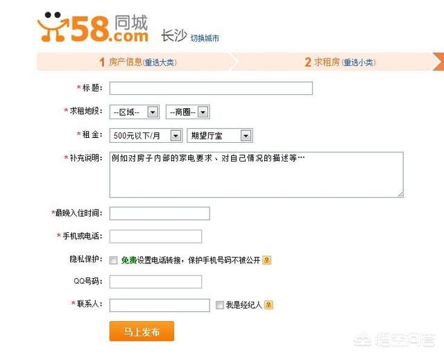 网上发布出租屋信息,我们一般是选择同城网的。打开58同城网后→点免费发布信息→点房户→选整房出租→然后会有提示你登入(选择你注册的帐号就登上去了)→填写自己想写的房屋信息联系方式等发布就完成了。下面按步骤配图可以参考