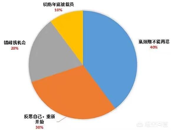 。相比年后的“金三银四”,年前并不是跳槽和招聘旺季。关于跳槽的最佳时机,43.51%认为是开年后三、四月,1.77%认为在年中九、十月。但也有39.51%的参与者认为好机会不分时期,随时可能发生,甚至有15.21%的人认为,最佳时机就在年底。不过,等不及年终奖,选择年底就跳槽的职场人还有更多不同的原因。其中最主要的问题来自瓶颈期压力,有33.44%的人表示工作已经遇到瓶颈,忍完一年不想再忍了;此外,25.22%的人认为一年的工作到头,该是反思自己重新开始的时候了;16.69%的人认为虽然还没到招聘旺季,但错开高峰时期选择工作机会也不错;只有8.55%的人认为公司年底也要吐旧纳新,自己不想在公司太被动。