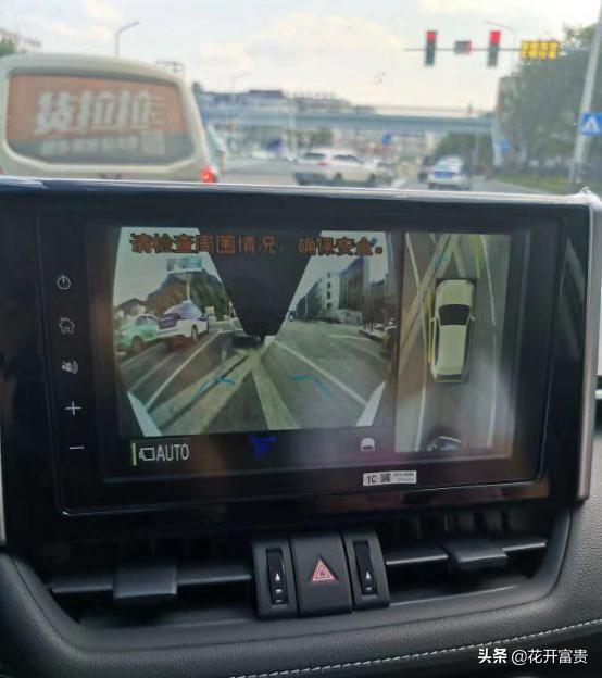 其实,除了外观,荣放的内饰也是很好看的,一字排开的中控,配合悬浮式大屏,整体视觉效果很有气势,在这里给楼主提一个小细节,在空调出风口的调节上,这一代车型还带有回字形的纹路,摸上去很有手感。当然了,荣放的大屏也是非常好用的,在车速较低的时候,这台车的全景影像就可以自动开启,不管是什么样的路况,我都可以轻松进退。