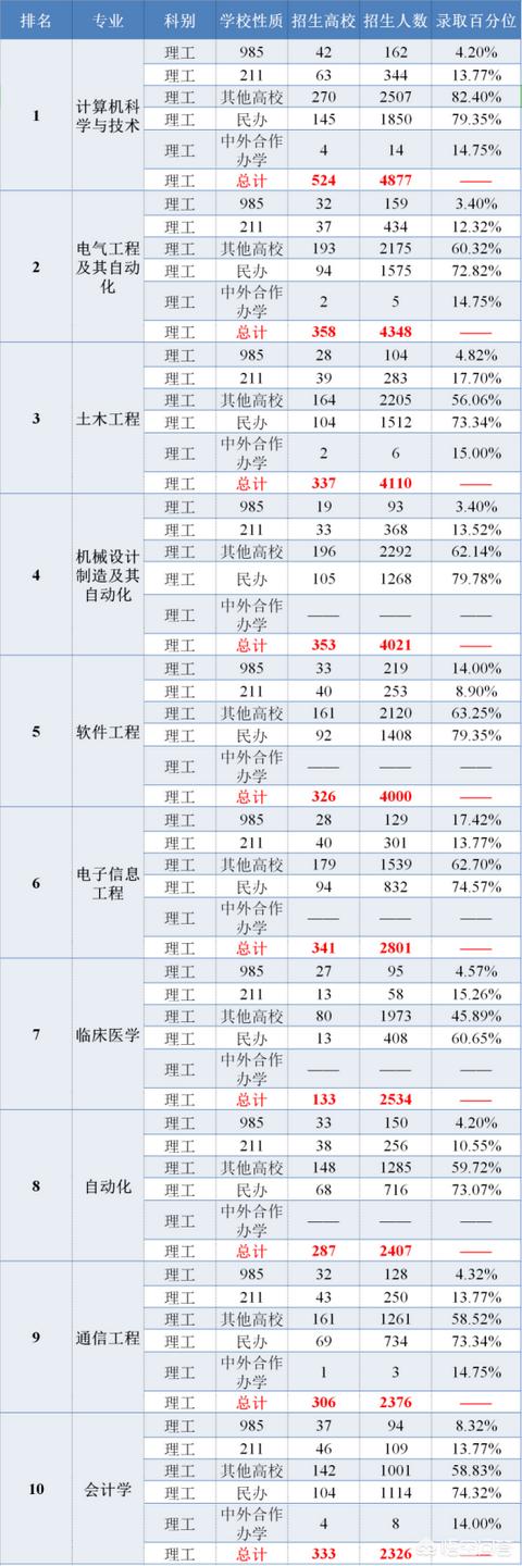上榜显示,理工类中招生数量最多的十大专业,招生人数都在2300+,这10大专业招生总量占到河北省理工招生计划的24%)。