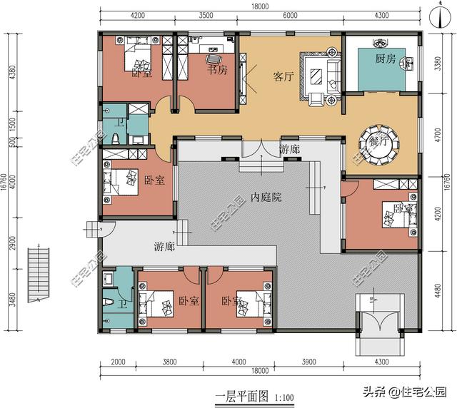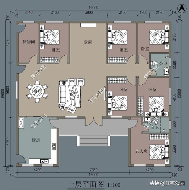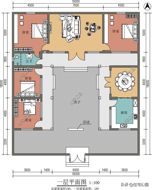另外这套三合院可以说是完美满足题主的需求,开间16米,房子部分进深14.8米,尺寸刚好合适,而且有院子,4间卧室刚刚好。