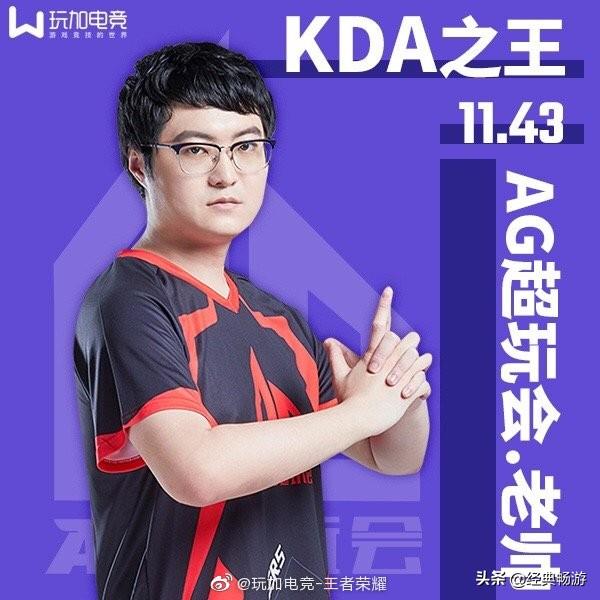 首先恭喜AG超玩会老帅荣膺上周比赛的KDA之王的称号,在老帅这么多局的比赛中,他的发挥一直是最稳定的那个,始终在后面稳定的打输出。不论是上官婉儿,安琪拉还是西施,能够稳定的站在队友身后平A打控制。